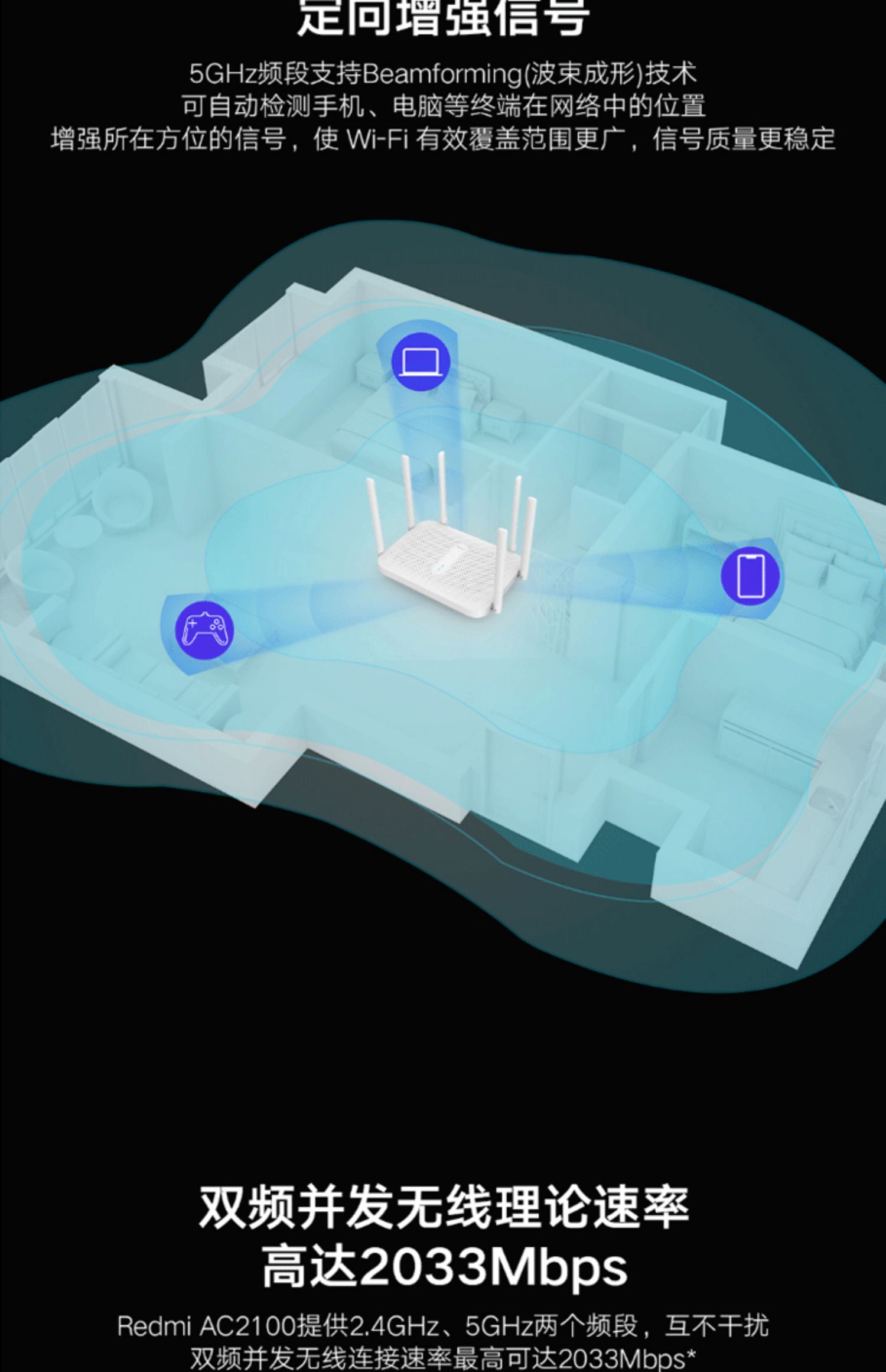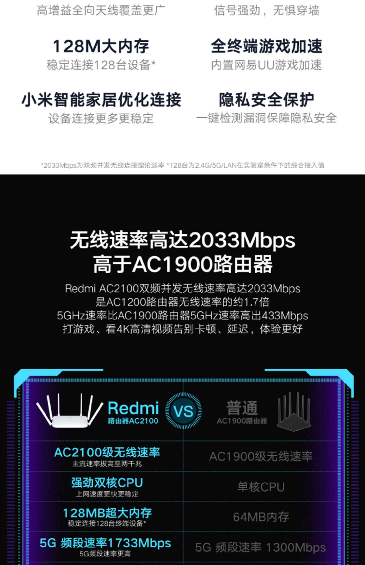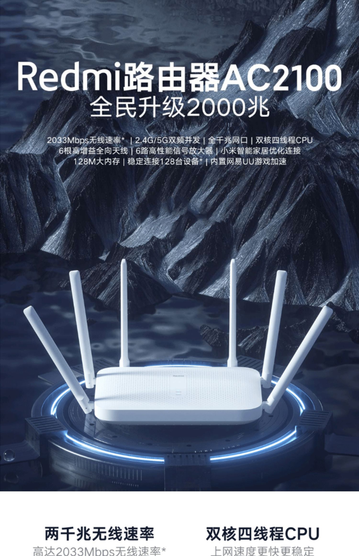 小米 Redmi路由器AC2100千兆版双频端口家用5G高速WiFi无线穿墙王