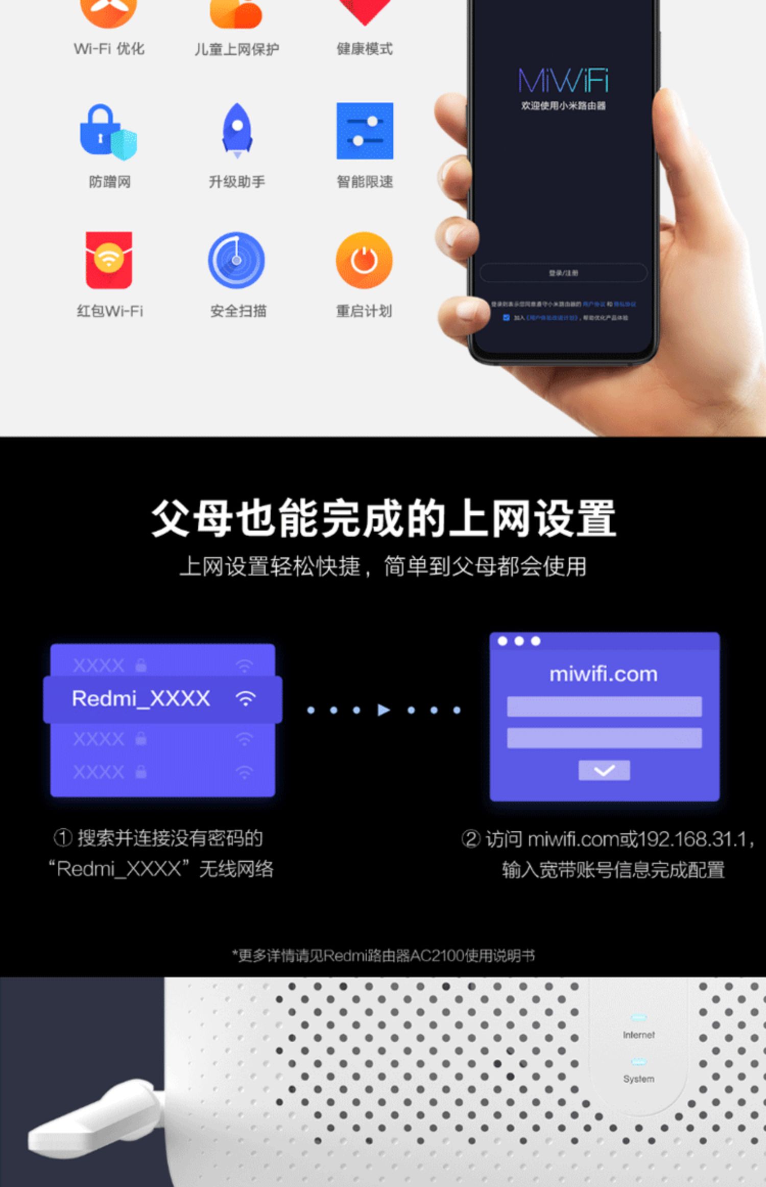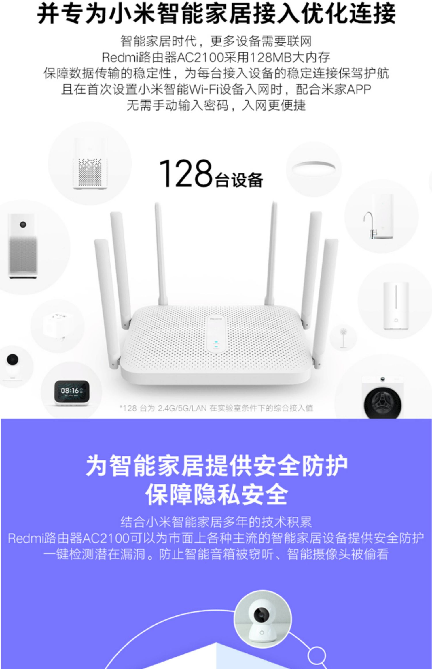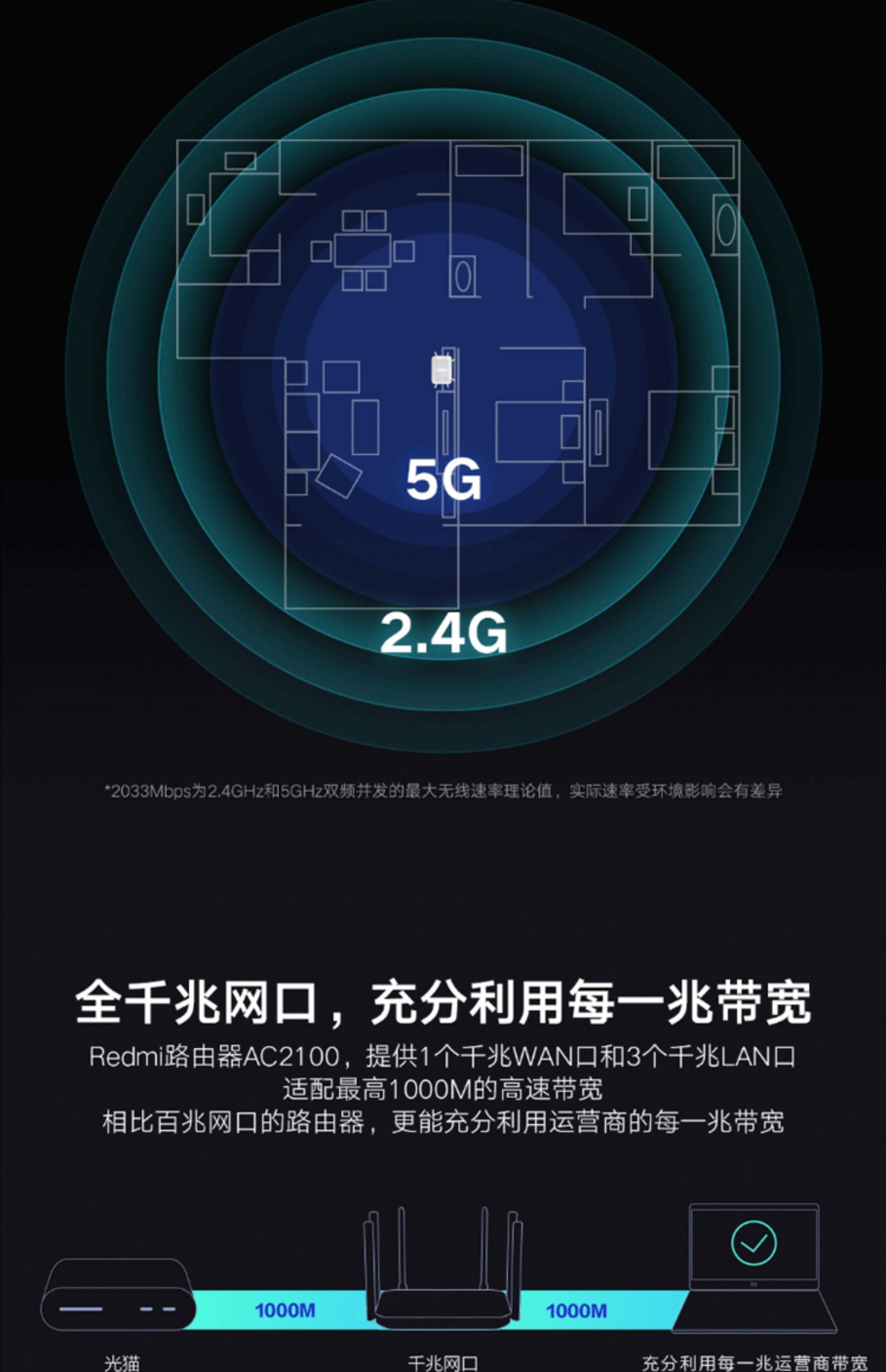 小米 Redmi路由器AC2100千兆版双频端口家用5G高速WiFi无线穿墙王