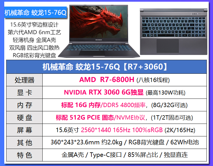 MECHREVO/机械革命 蛟龙 z3 2022蛟龙16英寸电竞屏游戏笔记本电脑